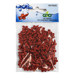 Replacement 360° sprayer for use with cloning machines. Replace clogged sprayers in all major brand cloning systems, upgrade cheaper sprayers, or use them to create custom cloning or aeroponic systems. These are the highest quality sprayers and are identical to what is included with most major brand cloning systems. Sold in packs of 100.
