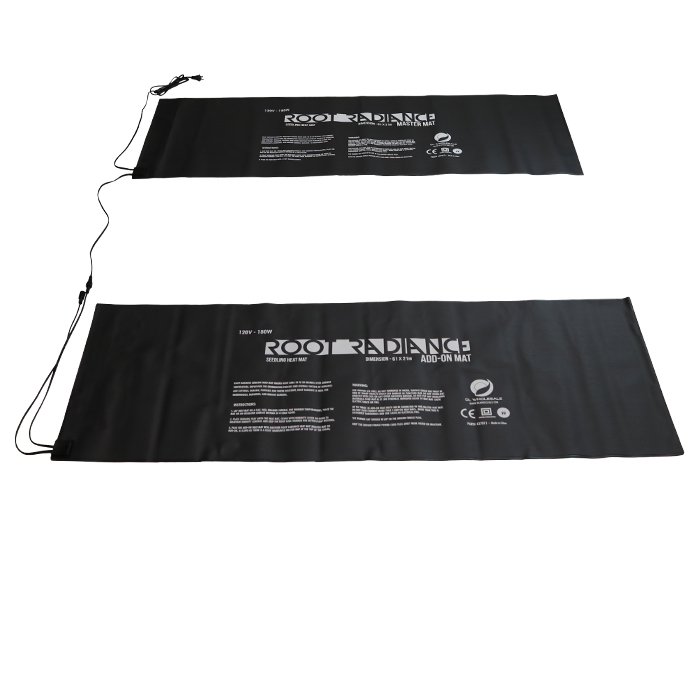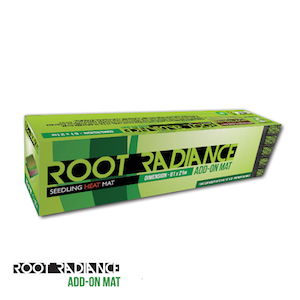 Root Radiance seedling heat mat warms root area up to 20 degrees over ambient temperature, improving the germination process and overall success of seedlings and cuttings. Durable, portable and water resistant, root radiance is ideal for greenhouses, nurseries, and indoor gardens. This new series features a "Master Mat" with Add-On mats sold separately. These new heat mats are daisy chain capable, and each Master Mat can handle up to 3 Add-Ons. Also, each of these extra-large Heat Mats can accommodate up to (5) 10''x20''