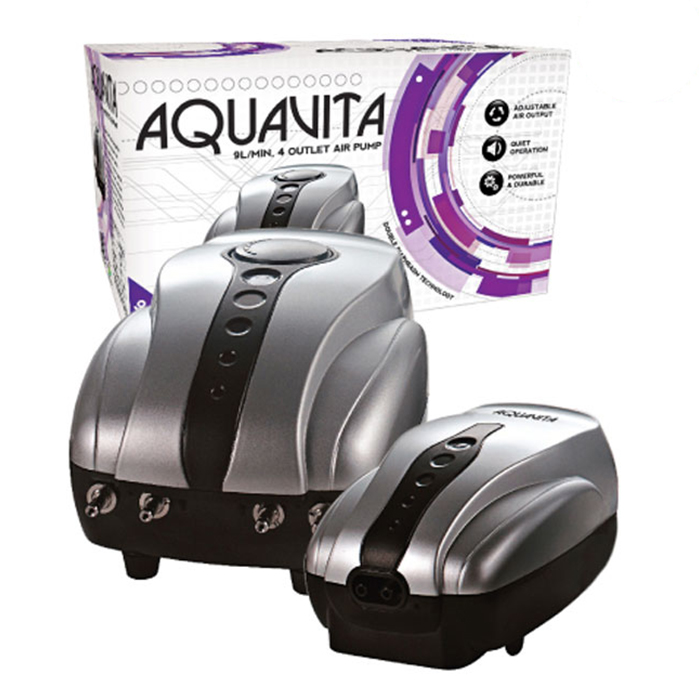 The AquaVita Air Pumps are great for adding oxygen to aquariums and hydroponic systems when used in conjunction with an air stone, especially AquaVita Air Stones. These super quiet pumps feature a double diaphragm for long lasting reliability. All models have a 5’ power cord and require a 3/16", inner diameter hose size. 1 year manufacturer’s warranty.