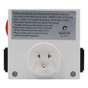 Stay on time with Grow1 dual outlet mechanical timers. With a 15 Amp maximum load and 2 outlets these timers can handle most of your high amperage devices from Ballast's, fans, air conditioners and many other commonly used grow room gear. Set the timer with ease using 15 minute increment prongs and a convenient on/off indicator light. With the simple flip of a switch the timer can also be bypassed for continuous use. These timers are UL approved and ready to keep your grow room time!