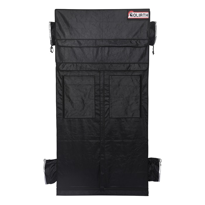 Professionally designed Goliath Grow Tents are ideal for experts and beginners alike. Expert configuration puts ducting ports in their ideal locations. Large Easy-View windows offer progress view access without compromising your growing environment. Doorways offer 360 degree access. Large configuration provides obstruction free maneuvering. Maintaining an ideal growing space is a breeze with its thick material and large double cinching duct ports.
