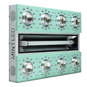 COB or "Chips Of Board" is a new way of building an LED! The LED is mounted to a single substrate and then that substrate is wired to provide energy to the LED chips. Using this technology creates an all new level of efficiency to the way we use LED! Less wires and less solder points ensures a longer life and less room for error! This LED is packed full of features to help you achieve maximum success in your garden! Using eight 3000K COB LEDs surrounded by 32 additional 6500K diodes this fixture provides a balanced full spectrum of light to deeply penetrate the canopy! Equipped with a UVB Bar that you and your plants will love! UVB is a reactive form of light naturally occurring from our sun; when the plants feel this light they know to protect themselves with sweet sticky resin! You could say the plant can make its own sun screen in a way! The MINT LED COB 1000 provides UVA, UVB, and IR to make your plants the best that they can be! Use the remote control to easily change the features on this cool-to-the-touch light and control each individual spectrum to exactly what you need! Settle for leaving your room in nothing but MINT condition! 4.05 AMPS