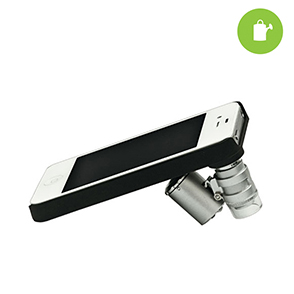 The Grow1 iPhone Case + LED Binocular Microscope 60x includes the Binocular Microscope which features a 60x magnification and attaches to the included case, utilizing your iPhone 4's built-in camera.