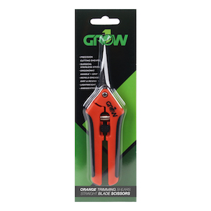 Please note that the graphic packaging inserts for the Grow1 Orange Trimming Shears Curved Blade Scissors contains a typo in the title. This product is sold as is. | EACH | CASE | MASTER CASE | PALLET |