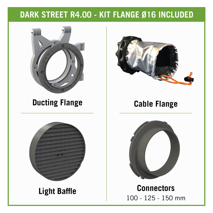DUCTING FLANGEs (DF16) for managing intake/exhaust and comes with everything you need to install the complete system. The