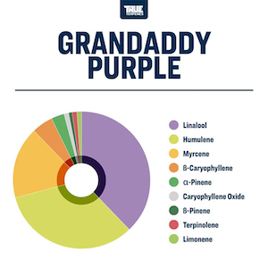 GDP’s aromatic profile is noted for offering a combination of sweet floral notes with scents from the Earth. More specifically, most users pick up sweet notes of fruits like berries and grapes. Some have noted that even a small amount of properly grown Grandaddy Purple could fill up a room. When combusted, the pine, berry and grapes flavors continue to come through, as does a thick cloud of smoke.