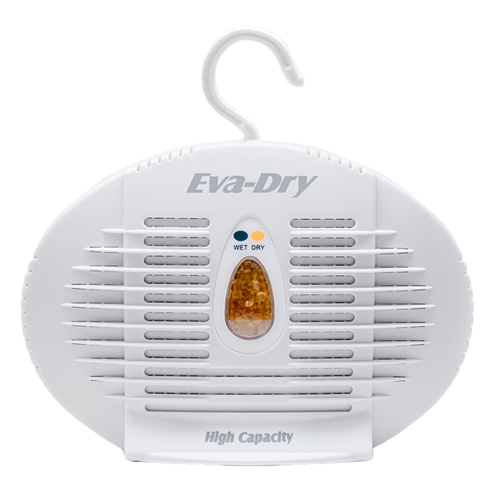 The E-500 fights and protects against dampness in areas such as: Closets: Eva-Dry prevents damage to fabrics and musty odors caused by excess moisture. Boats: Keeps boat cabins and areas dry and free of humidity build-up. RVs and campers: Protect your outdoor home from humidity in the air and interior living spaces. Gun Safes: Prevent rust to guns and expensive ammunition and other damage caused by excess moisture. Bathrooms/Laundry Rooms: Eva-Dry absorbs excess moisture form vapor related activities, and helps dry fabrics faster. This eco-friendly dehumidifier silently and reliably protects against mold, mildew and moisture in areas larger than the Eva-Dry E-333, units and lasts 30-60 days before renewing. Special features of the E-500 includes: the unit works in areas up to 500 cubic feet, requires no batteries or cords for use, is 100% renewable, works up to ten years, is compact/silent, always spill and mess free and is non-toxic, child and pet safe! The unit measures 8" L , 2 ½" W, 5 ½" H.
