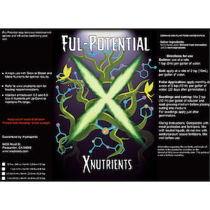 Ful-Potential is a humic acid product designed to increase nutrient efficiency. Your plants benefit from accelerated growth and reduced stress. By chelating nutrients it prevents lock out and enhances uptake, thus saving on nutrient cost and reducing potential deficiencies. The Humic acid allow for successful uptake through foliar feeding application with built in anionic and non ionic surfactants. Adding humic acid helps improved soil conditioning and overall roots health in Coco, Hydroponic, and Soil gardens.