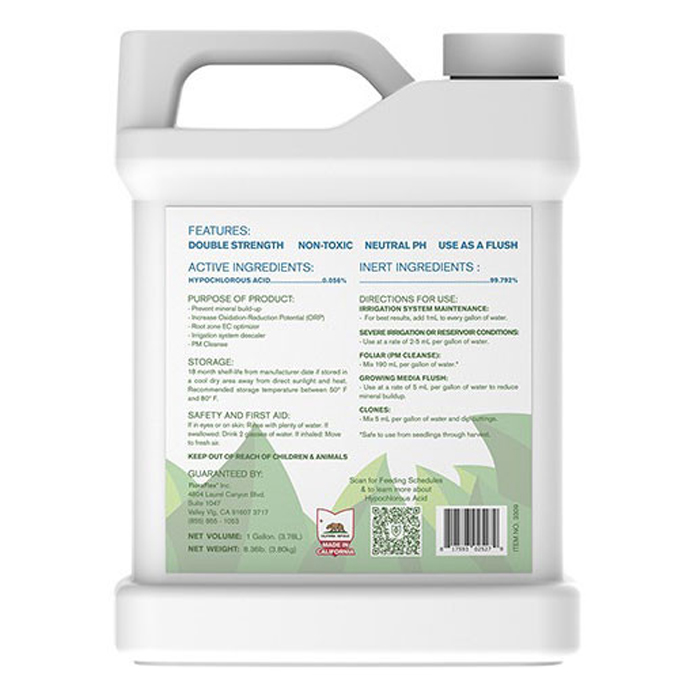 Root Drip is a root, irrigation and PM cleansing agent. Derived from salt and a propriety electrochemical treatment process. Root Drip is a plant- safe chemical with powerful oxidative properties that contribute to improving both Nutrient and Oxygen availability, creating a clean root zone free of unwanted organic and mineral buildup.