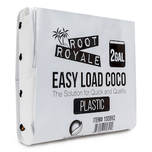 A proven hydroponic substrate for professional growing applications in a ready-to-use pot! Root Royale Easy Load Coco bags are made with a pre-mixed proprietary blend of coco coir fiber coco chips to ensure optimum water, nutrient and air retention. Ideal for indoor, greenhouse, and outdoor growing environments, Root Royale Easy Load Coco Bags are suitable for both conventional growing systems and specialty crops. Root Royale’s Coco blend promotes root development and overall plant vigor.