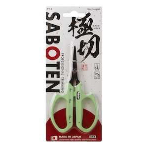 Saboten Fluorine Coated Angled Blade Trimming Scissors Green (PT-2)