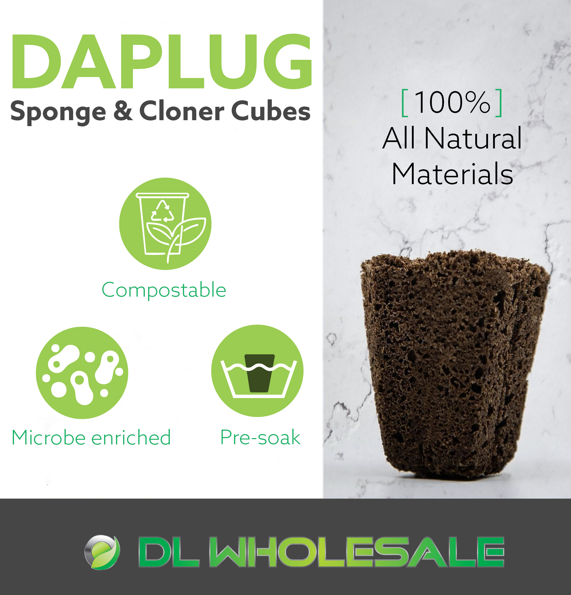 DaPlug Sponge Cubes are an all-natural, eco-friendly, seed starting solution perfect for use in both soil and hydroponic applications. Their extremely spongy texture provides a superior ability to retain moisture and results in an optimal air-to-water ratio. The cubes also provide even dry downs for further root development making these sponge cubes great for both seeds and clones. The Sponge Cubes make transitioning your grows easy by allowing you to plant them directly into soil or any hydroponic system either indoors or outdoors. DaPlug Sponge Cubes are proven to stimulate more root growth and can provide year round reliable germination and healthy root development for your plants!