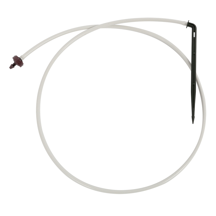 Netafim Single dripper stake assemblies will reduce set up time considerably. This 36-inch assembly will install right where you need it. Dripper assembly uses a 0.3GPH pressure compensating emitter with CNL check vale, 36 inches of Super Flex Tubing and an angled barbed stake. Minimum operating pressure is 10PSI.