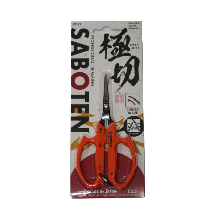 Saboten Automatic Trimming Scissors are a popular tool among gardeners, bonsai enthusiasts, hobbyists, horticulturists, and commercial growers, known for their sharpness and precision. Designed specifically for trimming and shaping plants, these stainless steel scissors feature an ergonomic design and non-slip grip for easy trimming. The extra slim sharp tip allows for quick, precise cuts, especially in hard-to-reach areas. The Saboten Automatic Trimming Scissors feature 3mm magnetic repelling inserts integrated into the handles, ensuring a smooth trimming experience. We offer a replacement magnets in various sizes that can be easily installed available here. Additionally, the PT-21 trimming scissors can be used without the magnets if preferred. Additionally, they include measurement indications on the blade and handles for convenient measuring. Overall, the Saboten PT-21 scissors are favored for their functionality, making them a reliable choice for anyone who works with plants.