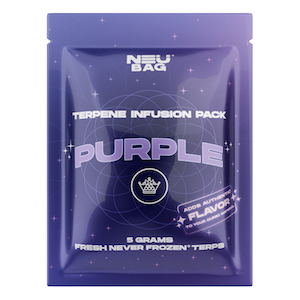 The Purple NEU Bags are mesh infusion packs saturated with Fresh Never Frozen terpenes. Once an NEU has been placed into a bag or bin with cured material, the diffusion process gently migrates the oil from the infusion pack to the cured material. Over the course of the first 48 hours, all of the terpenes will have left the infusion pack and become saturated in the cured material. And that’s how you get an NEU Bag. The Purple flavors and aromas are similar to the Granddaddy Purple and Purple Urkle strains.
