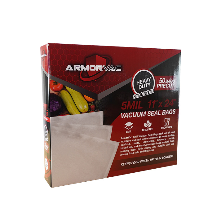 Keeps food fresh up to 5x Longer! ArmorVac 5mil Vacuum Seal Bags lock out air and moisture and seal in the freshness of meat, poultry, seafood, fruits, vegetables, leftovers, herbs, botanicals, and more! ArmorVac bags are 5mil thick making them both strong and durable and are always food safe and BPA free!