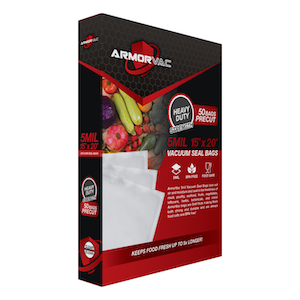 Keeps food fresh up to 5x Longer! ArmorVac 5mil Vacuum Seal Bags lock out air and moisture and seal in the freshness of meat, poultry, seafood, fruits, vegetables, leftovers, herbs, botanicals, and more! ArmorVac bags are 5mil thick making them both strong and durable and are always food safe and BPA free!