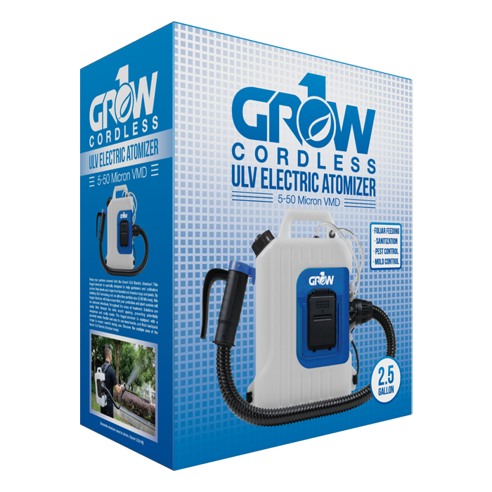 The Grow1 ULV Electric Atomizer utilizes a high-power motor and superior design to bring high efficiency in uniform droplet size, long spray range, reliability, and overall durability. It is specially designed to be used in any size of garden and greenhouse operations. The uniqueness of the Atomizer also allows it to be practically used in hospitals, offices, and food processing facilities or anywhere that sanitation and disinfection are needed. The benefits and uses of the Atomizer extend beyond its uses in foliage spraying/feeding, pest prevention, and disinfection/sanitation. Create an ultra, low-range mist for indoor and outdoor gardening use. Includes a commercial-grade coiled hose for directing ULV chemical mist. The lightweight, translucent poly tank has a built-in backpack-style harness for portable ease of use.