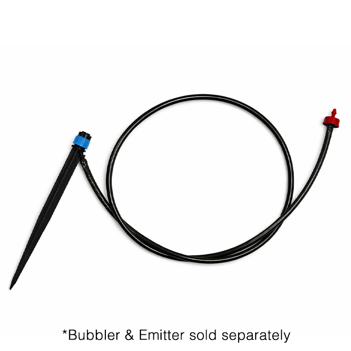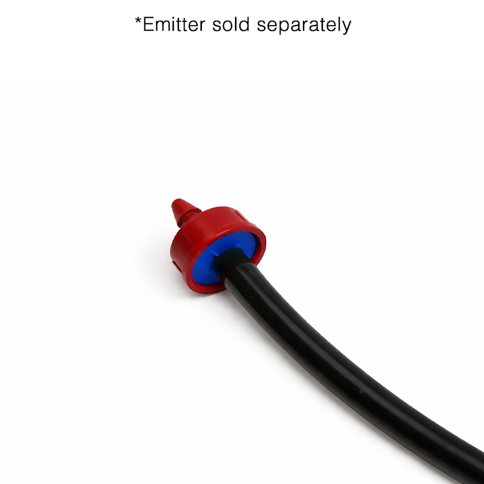 GROW1 Irrigation Whips are a reliable, flexible solution for fluid transfer in irrigation systems. Crafted from high-quality, durable vinyl (PVC) material, they offer excellent flexibility while maintaining strength and kink resistance. The 100% opaque black color effectively blocks light transmission, helping prevent algae and bacterial growth inside the line—ideal for light-sensitive applications like hydroponics and drip systems.