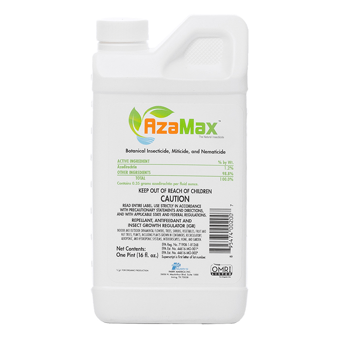 General Hydroponics AzaMax is a botanical insecticide, miticide, and nematicide derived from neem. OMRI-listed and EPA-registered, it provides effective control of a wide range of pests while acting as an antifeedant, growth regulator, and anti-oviposition agent. It works best on immature life stages.