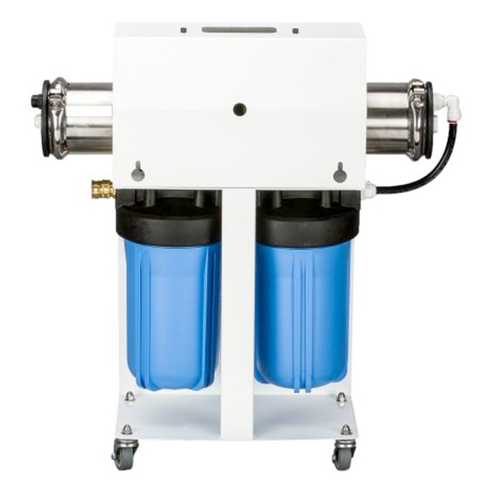 The GX1000 is designed to flow 42 gallons per hour of pure RO water with an astounding 1:1 ratio - High flow rates and water savings never before seen in a package so affordable and durable. Utilizing the best membrane technology in the world (98.5% rejection), mounted on locking casters, and wrapped in our GX Series patented bracketing system, our premier flagship is a mobile powerhouse.