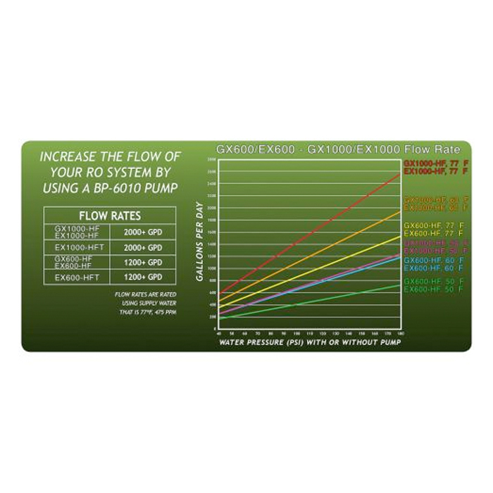 For those who demand even more performance, the GX1000HF can be used with a booster pump, raising the system pressure to 150psi, doubling the gallon per day output.