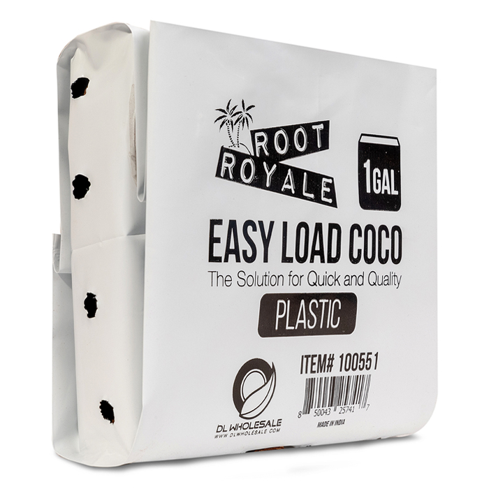 A proven hydroponic substrate for professional growing applications in a ready-to-use pot! Root Royale Easy Load Coco bags are made with a pre-mixed proprietary blend of coco coir fiber coco chips to ensure optimum water, nutrient and air retention. Ideal for indoor, greenhouse, and outdoor growing environments, Root Royale Easy Load Coco Bags are suitable for both conventional growing systems and specialty crops. Root Royale’s Coco blend promotes root development and overall plant vigor.