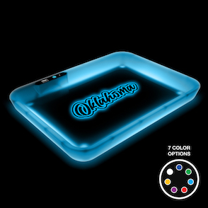 Limited Edition Illuminating LED rolling tray featuring 7 multi-color LED light options. Rechargeable 4-Hour 550 mAh built-in battery with life indicator. Fast charging USB-C charging cable and micro suede carry bag included. Dimensions: 11 x 8.25 x 1.25 inches.