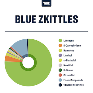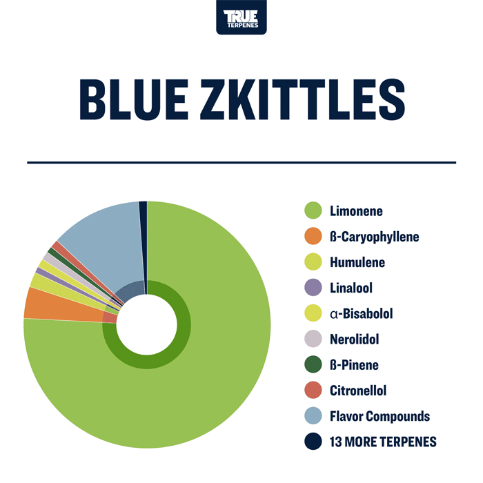 Blue Zkittles Infused Strain Profile takes the calming, floral and tart citrus blend of Blue Diamond and Zkittles strains and adds a burst of blue raspberry. Full Flavor. Full Effect.