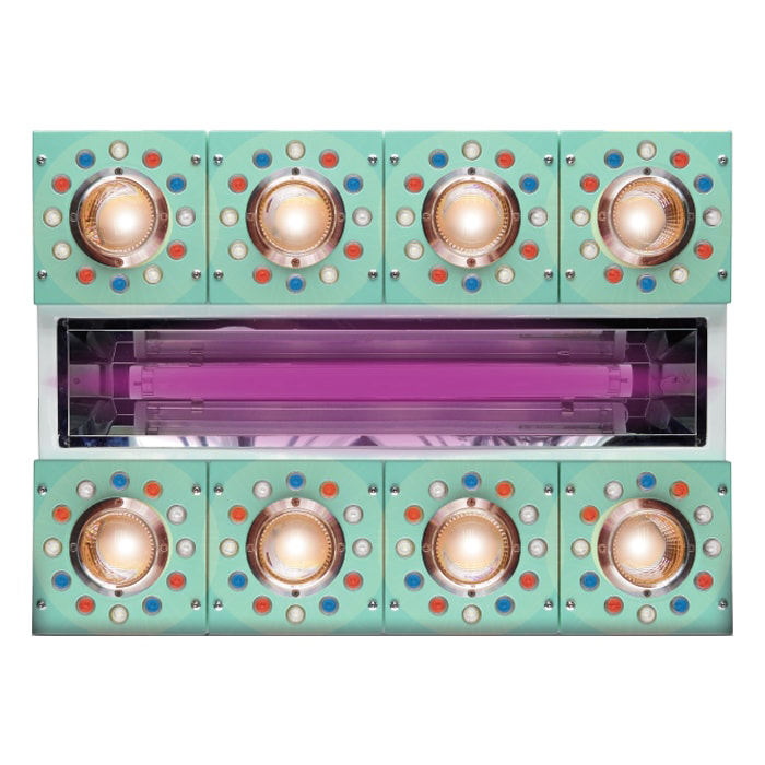 COB or "Chips Of Board" is a new way of building an LED! The LED is mounted to a single substrate and then that substrate is wired to provide energy to the LED chips. Using this technology creates an all new level of efficiency to the way we use LED! Less wires and less solder points ensures a longer life and less room for error! This LED is packed full of features to help you achieve maximum success in your garden! Using eight 3000K COB LEDs surrounded by 32 additional 6500K diodes this fixture provides a balanced full spectrum of light to deeply penetrate the canopy! Equipped with a UVB Bar that you and your plants will love! UVB is a reactive form of light naturally occurring from our sun; when the plants feel this light they know to protect themselves with sweet sticky resin! You could say the plant can make its own sun screen in a way! The MINT LED COB 1000 provides UVA, UVB, and IR to make your plants the best that they can be! Use the remote control to easily change the features on this cool-to-the-touch light and control each individual spectrum to exactly what you need! Settle for leaving your room in nothing but MINT condition! 4.05 AMPS