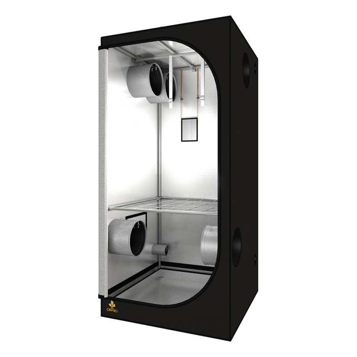 Specially lined with 95% reflective hammered effect mylar fabric (210D), to increase light intensity and improve light distribution. Light-proof, waterproof and pre-equipped for extraction and ventilation, the tents come with equipment bars to support lamps, and carbon filters.