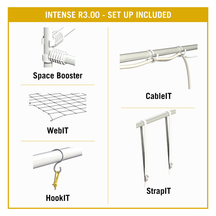 Many accessories allowing the grower to set up his tent easily, are included with the tent (CableIT, HookIT, PocketIT, Space Booster, WebIT...)