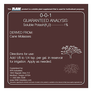 RAW Cane Molasses is a highly concentrated, water Soluble micronized molasses that gives all the benefits of Liquid Molasses without all the mess. The smallest 2oz package of RAW Cane Molasses is equivalent to 1 gallon of liquid molasses which makes it easier to transport. Cane Molasses is an excellent source of carbon energy (food) for beneficial microbes. RAW Cane Molasses is a beneficial supplement to all feeding schedules. Works in conjunction with all nutrient and feeding programs.