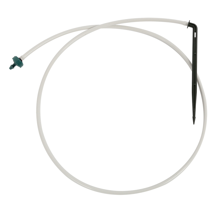Netafim Single dripper stake assemblies will reduce set up time considerably. This 36-inch assembly will install right where you need it. Dripper assembly uses a 2GPH pressure compensating emitter with CNL check vale, 36 inches of Super Flex Tubing and an angled barbed stake. Minimum operating pressure is 10PSI.
