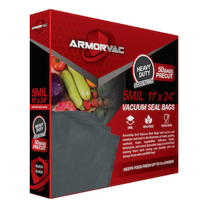 ArmorVac 11" x 24" 5mil Precut Vacuum Seal Bags All Black (50 Pack)