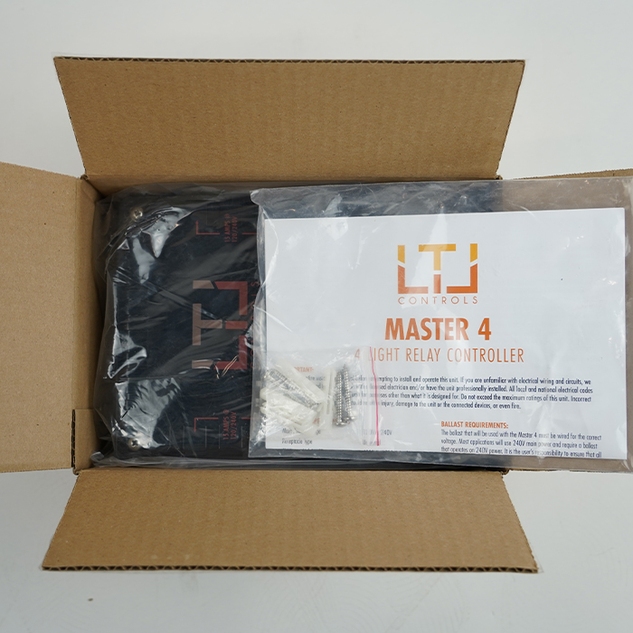 The Master 4 by LTL Controls is the safest and easiest way to control a 4 HID light setup. This controller has the capability to run a maximum of (4) 1000W ballasts using 120V or 240V power, with a maximum relay amperage of 30 amps, and includes a 120V trigger cable which can be connected to a 120V timing device.